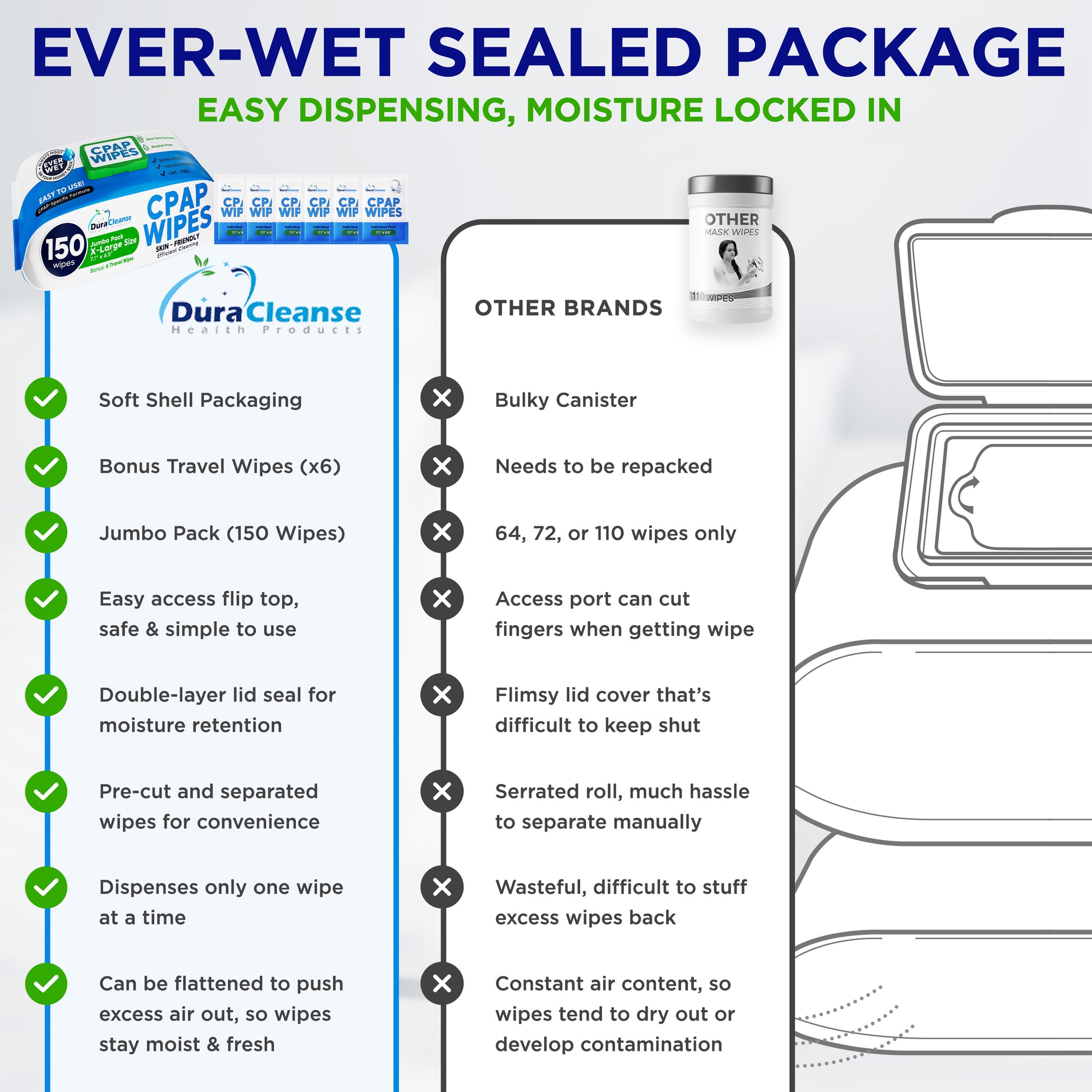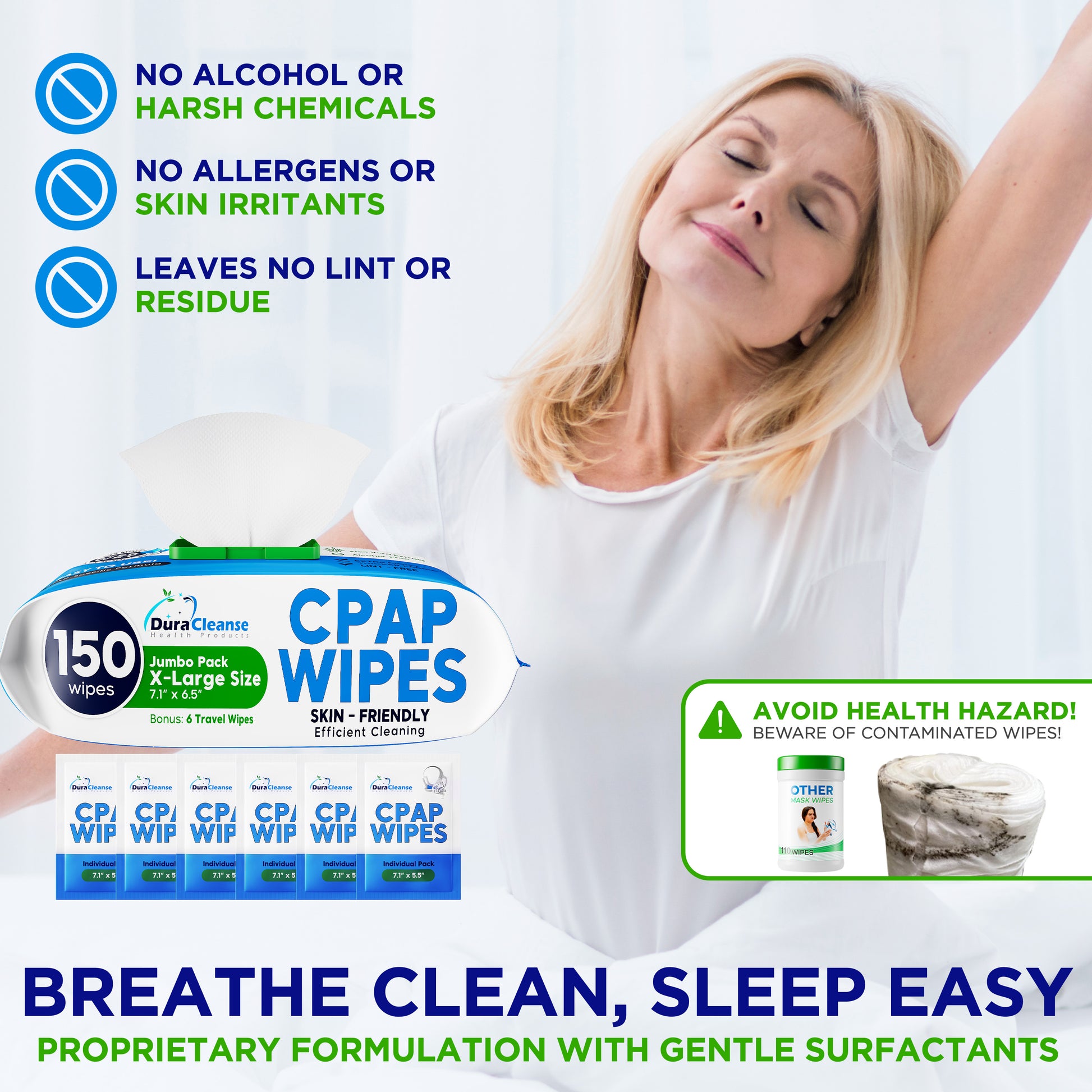Enhance your CPAP care with Dura Cleanse Premium CPAP Mask Wipes.