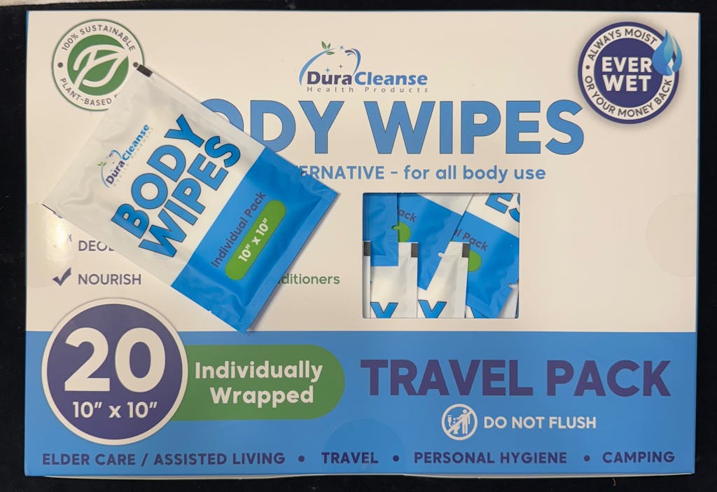 Perfect cleansing wipes to use following surgery or when you cannot bathe or shower. Body wipes are large and strong and do not tear or rip.